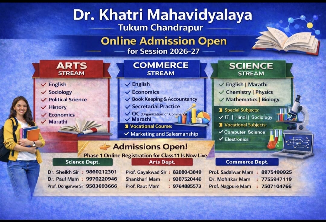 Arts, Science and Commerce Stream – Junior, Graduate, PG, Ph.D. Research Center and Diploma Courses